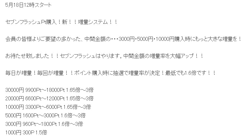 購入時のpt増量分が、今日昼から増えるらしい。