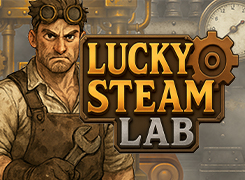壊れた蒸気機関を修理して工場を稼働させよう!フリースピンはSTEAM BURST BONUS!資材をラインに乗せてプレスしたら図柄が完成!